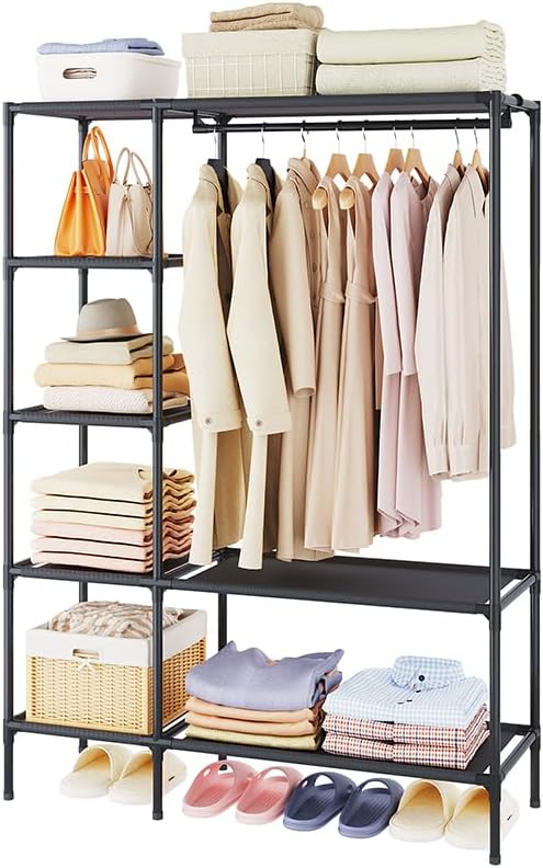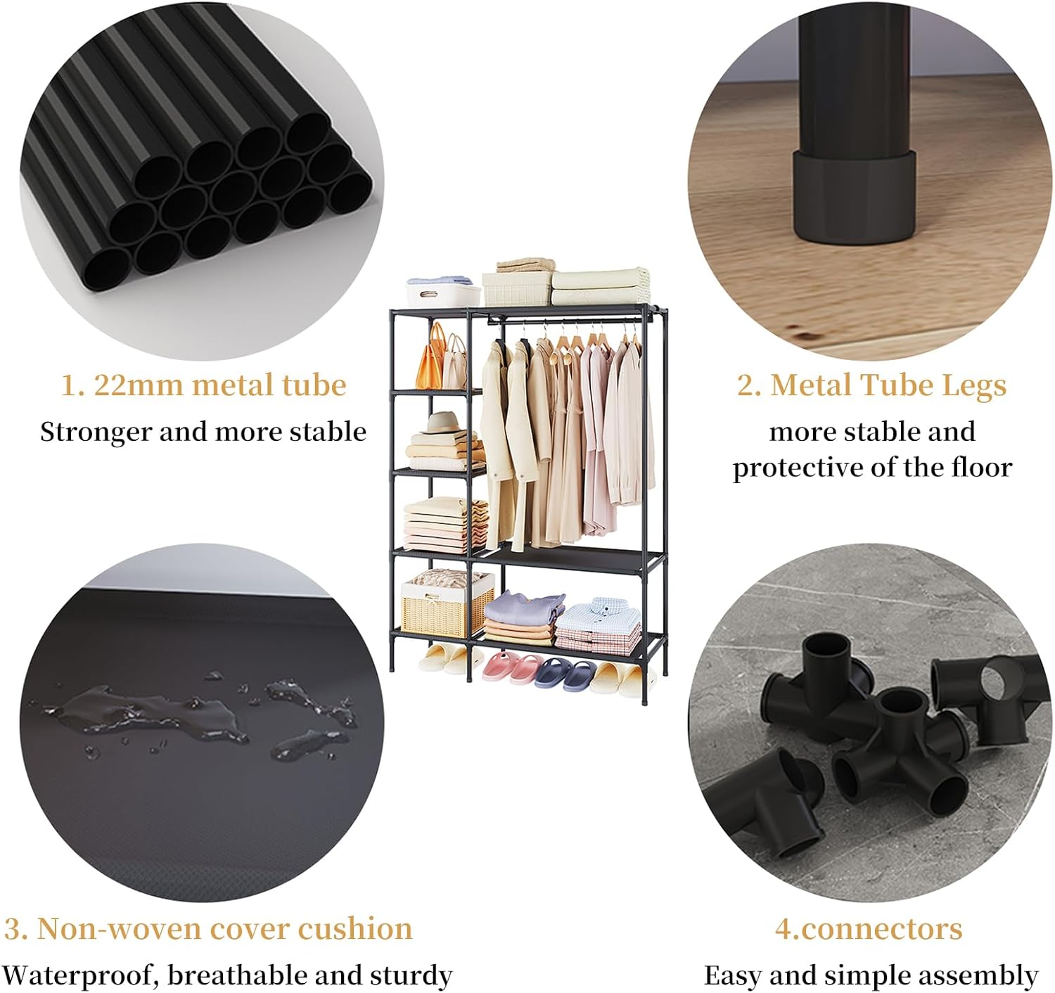 Dttwacoyh Portable Wardrobe Closet with Multi-Functional Segmentation, Large Capacity,50.2W x 17.5D x 70.8H inches,Metal Closet, Suitable for Bedroom,Checkroom, Living Room,Black